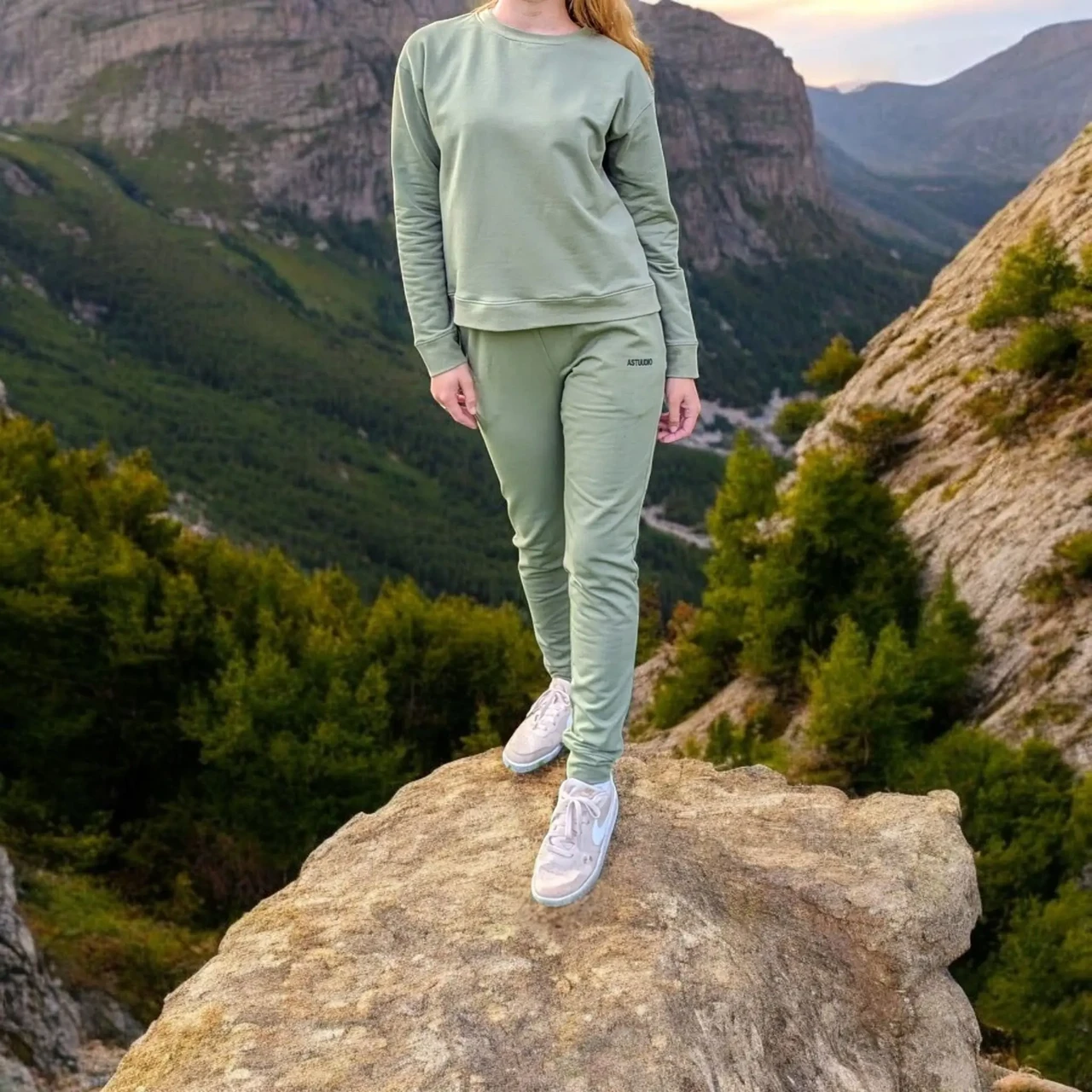 Pükstel tikandiga AStuudio logo. Aga saame teha sinna tikkida ka Sinu enda soovitud kirja.