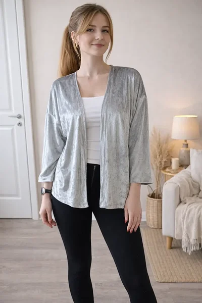 Veluur kimono/jakk - helehall S/M
